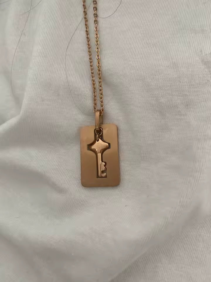 Un set de pulsera y collar con candado y llave diseñado para representar una conexión única.